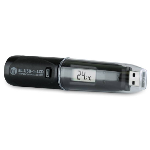 The Lascar Electronics EL-USB-1 is a standalone data logger which measures and stores more than 16,000 temperature readings over a -35 to +80°C (-31 to +176°F) range with a resolution of 0.5°C (1°F). The user can easily set up the logger and view downloaded data by plugging the data logger into a PC’s USB port and using the free EasyLog software (available as a free download from www.easylogusb.com). Data can then be graphed, printed and exported to other applications for detailed analysis. The high contrast LCD can show a variety of temperature information. At the touch of a button, the user can cycle between the current, maximum and minimum stored values for temperature.