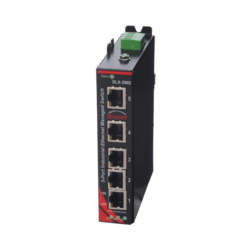 The Red Lion SLX-5MS is a 5 port industrial Ethernet managed switch that is designed to be rugged, reliable, real-time and secure. The SLX-5MS combines compact DIN rail packaging, protected circuitry and powerful software to keep