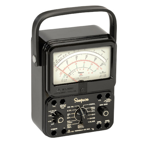 Nothing beats a Simpson 260-8 for monitoring fluctuating trends and rates. Portable yet with benchtop accuracy, the 260-8 is ideal for use anywhere — workshop, lab or in the field. The 260-8 comes with batteries, a manual and full-size test leads with threaded probe tips and screw-on alligator clips.
