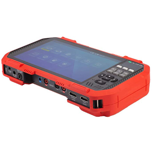 The Triplett CamView IP Pro-X 8075 is designed for the installation and maintenance of analog SD, analog HD and network HD video surveillance systems. It will guide you through a step-by-step process to test the functionality of IP cameras, whether they are connected to an existing network or directly attached to the tester. You can adjust the camera’s settings and record still images or video from the selected camera. You can also check the audio signal from the camera if it is equipped with a microphone. If the camera is directly connected, the tester will provide POE voltage to power the camera. Comes complete with (2) Li-ion batteries, Universal AC adapter/charger with 4 plugs, Ethernet cable, BNC/BNC cable, microUSB to USB cable, RS485 cable with extra screw terminal, audio cable, 12V camera power cable, lanyard and carrying case.